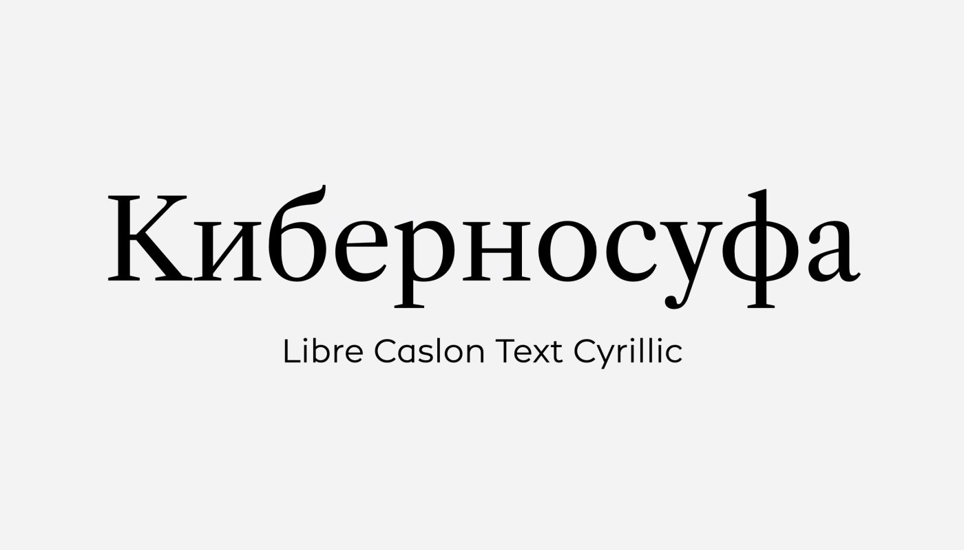 - Что это: Кириллические версии шрифтов Libre Caslon Text и Libre Caslon Condensed. Если вы искали бесплатный Caslon с кириллицей, то это оно!
